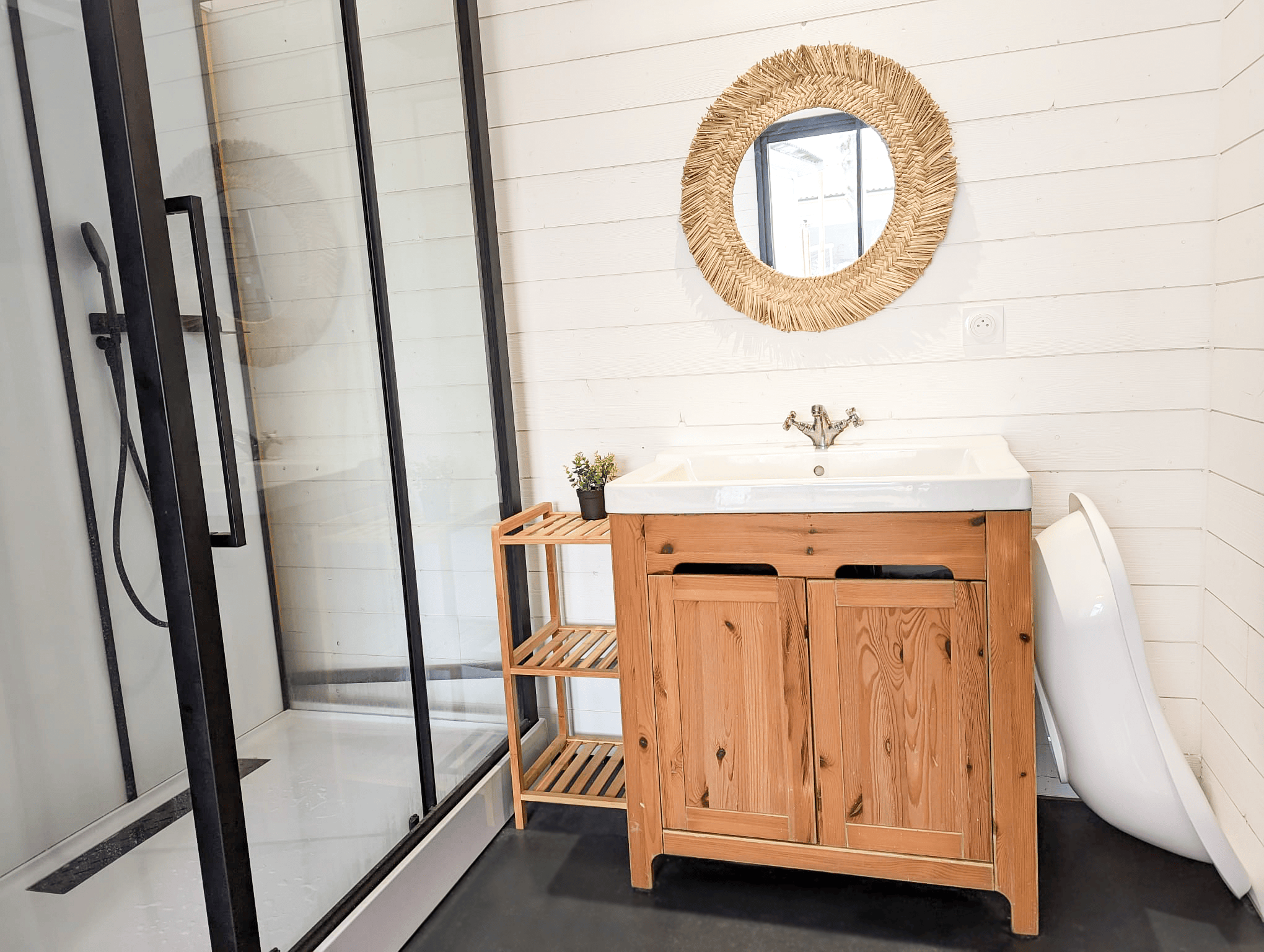 Le jardin clôturé permet de profiter des extérieurs en toute liberté. Vous trouverez également des bains de soleil pour vous relaxer, ainsi qu’un brasero et une plancha pour prolonger les soirées en extérieur. Cet espace est parfait pour partager des moments simples et agréables en famille ou entre amis.