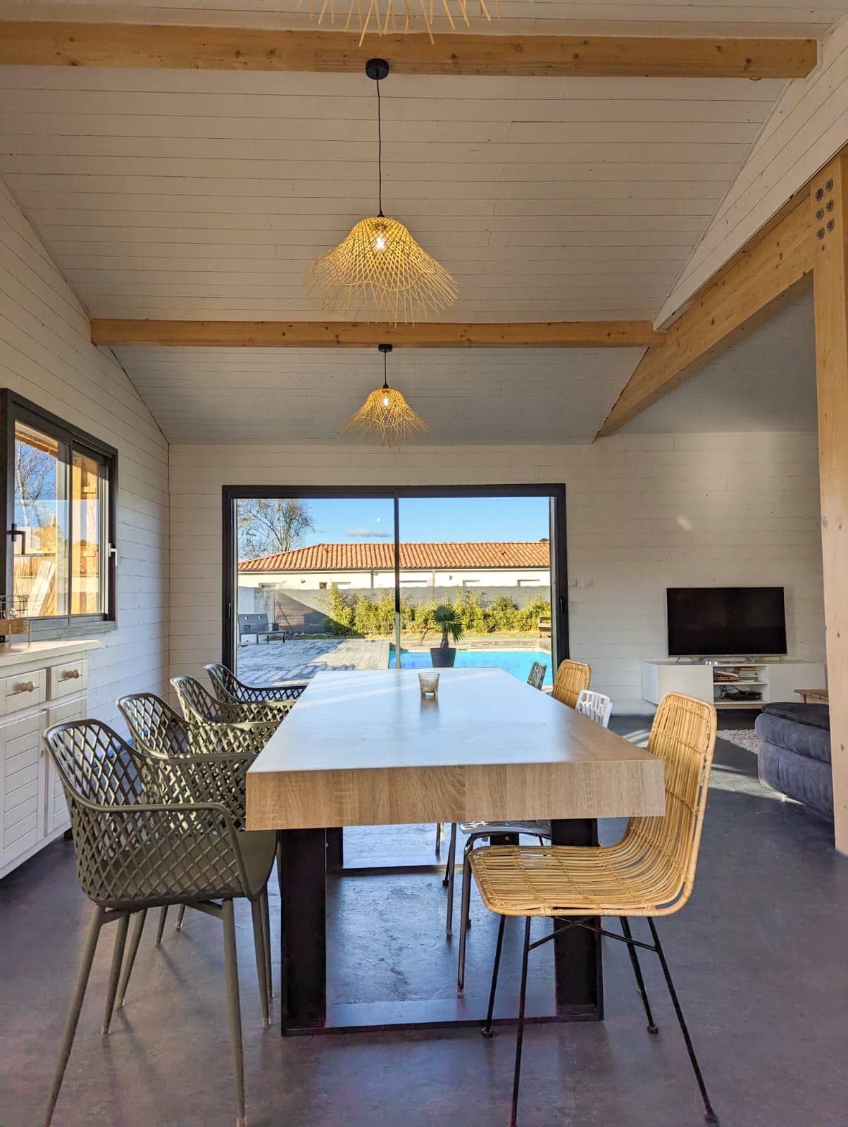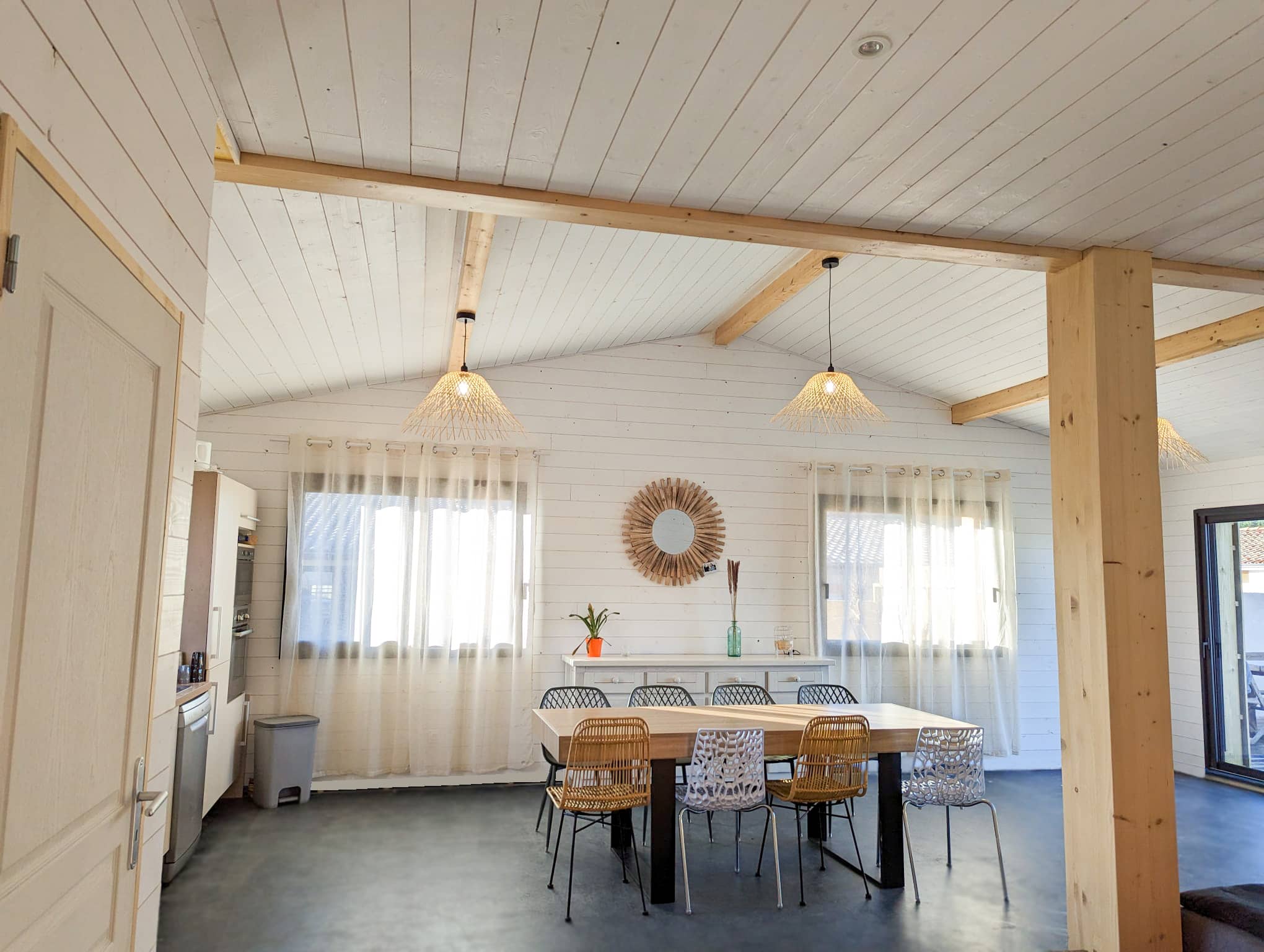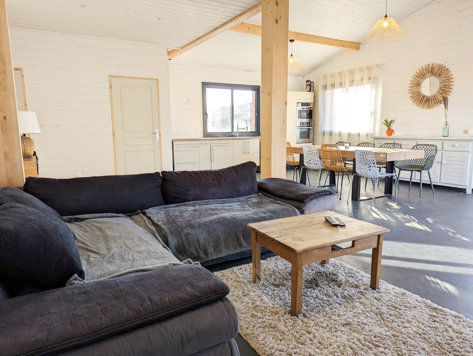 Au rez-de-chaussée, vous profitez d’une grande pièce de vie de 58 m² avec cuisine ouverte. Cet espace central est conçu pour partager les repas, se retrouver et profiter pleinement de chaque moment ensemble. La cuisine est entièrement équipée avec tout le nécessaire pour cuisiner facilement, que ce soit pour un dîner convivial ou un repas rapide après une journée de balade. Des jeux de société sont mis à votre disposition.